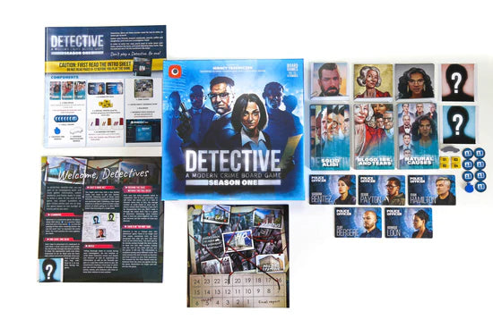 Detective: A Modern Crime Board Game – Season One, a.k.a. Detective: Season One, is a fully co-operative, deeply immersive board game in which 1-5 players take on the roles of investigators trying to solve a crime.