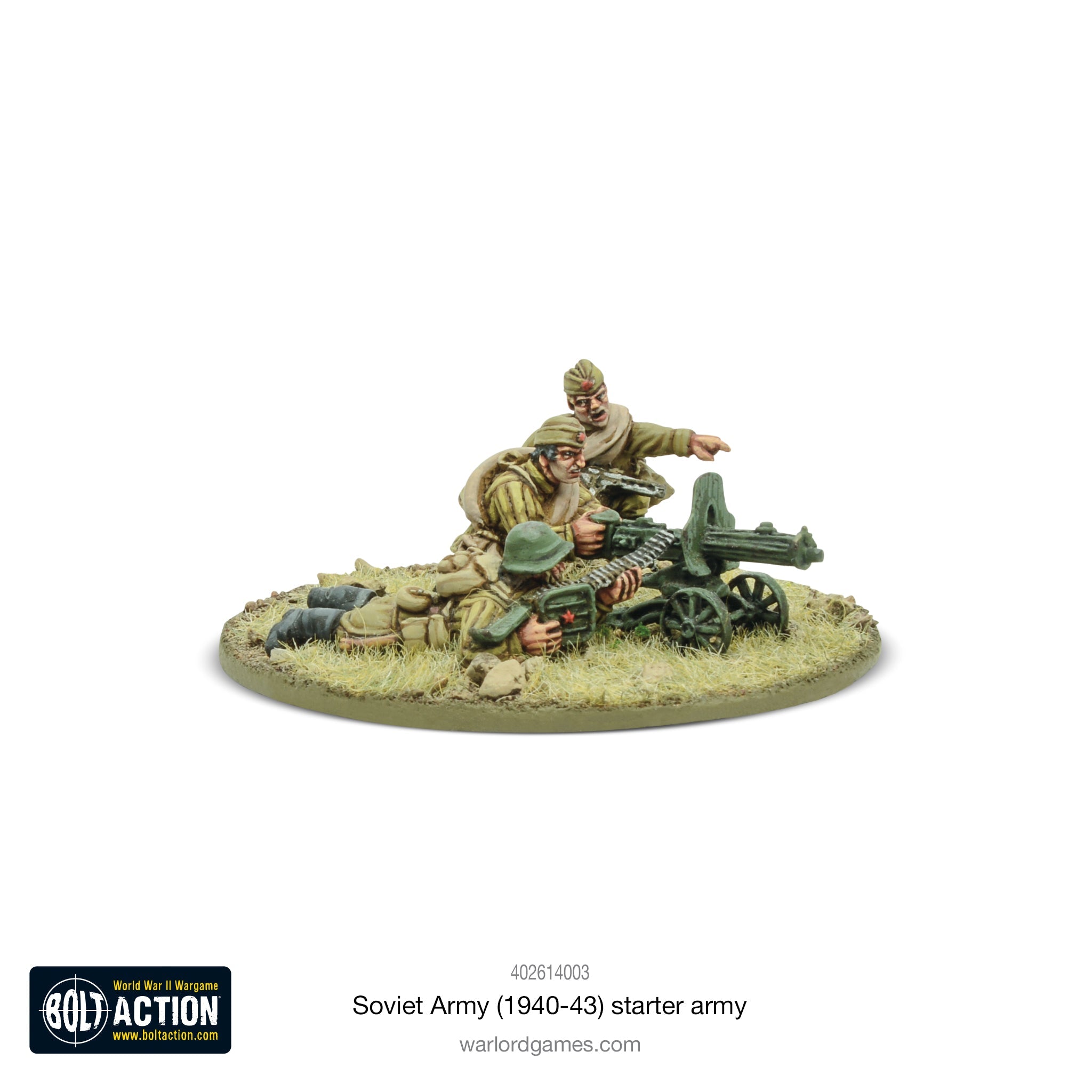 This Bolt Action starter army provides a great value core to your Soviet force during the early years of WWII - massed Red Army infantry supported by the deadly T-34/76 tank and suppressive firepower from a medium machine gun and 45mm anti-tank gun – death to the fascist invaders!