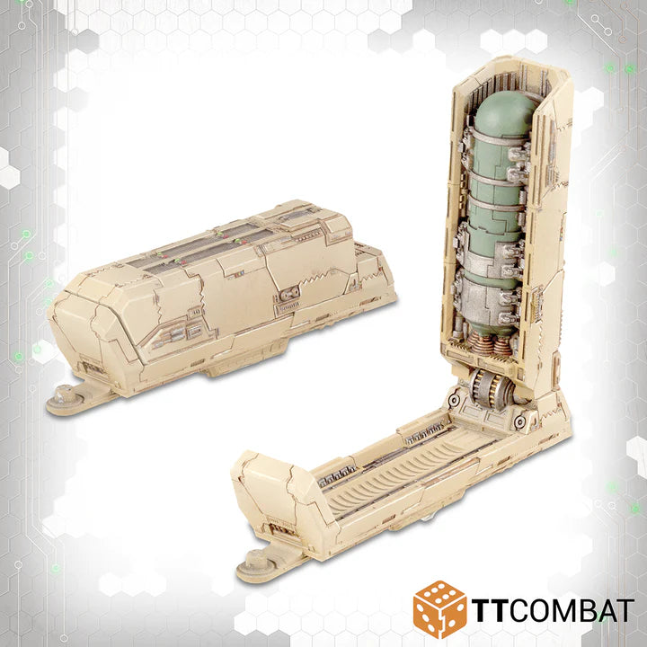 Thundering along the line, the Military Monorail makes for an excellent centrepiece that runs all the way across the board. With a battery of AA guns, giant Slayer Railgun, and a hidden launch bay packing a heavy payload that can be used to devastating effect. With dynamic posing due to a flexible track and columns, you'll be able to assemble this kit around your terrain.