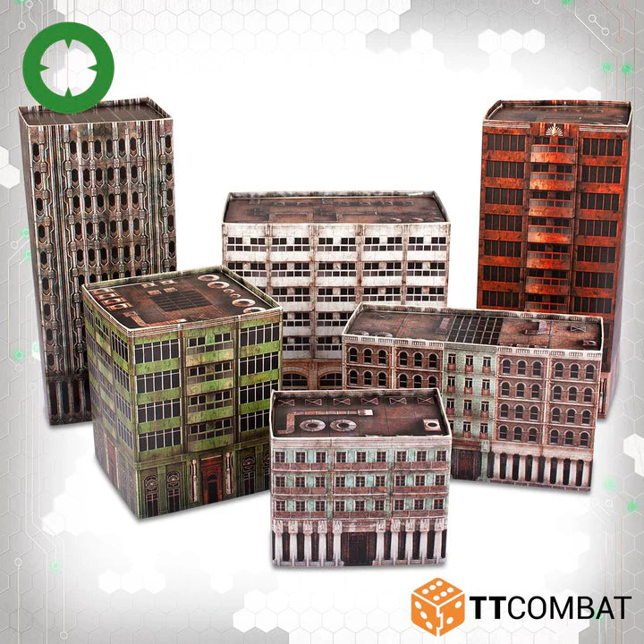 The Ruinscape is a customisable battlefield in a box. One contains all of the scenery you'll need to get started with Dropzone Commander, making a 6'x4' gaming space. The buildings and mats are designed to look dirty and broken, as if years of abandonment have left the battlefield tired and dangerous.
