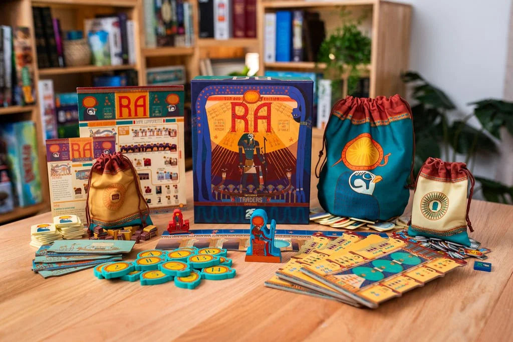 One of Reiner Knizia’s most loved games, RA is a classic auction game for 2-5 players, now in a new edition with revised artwork and deluxe components.